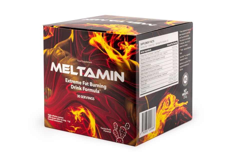 Meltamin is a modern fat burner in the form of a beverage with a cactus fruit flavor. The product contains a unique complex of 11 ingredients that contribute to the reduction of body fat and increase the body’s efficiency during exercise. Meltamin is dedicated to both professional athletes and people who simply want to lose weight.